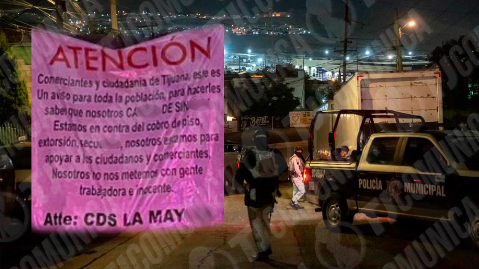 “ATENCIÓN comerciantes y ciudadanía de Tijuana: este es un aviso para toda la población, para hacerles saber que nosotros, CÁRTEL DE SINALOA, estamos en contra del cobro de piso, ext0rs1ón, s4cu4str0. Nosotros estamos para apoyar a los ciudadanos y comerciantes. No nos metemos con gente trabajadora e inocente. Atte: CDS LA MAYIZA”