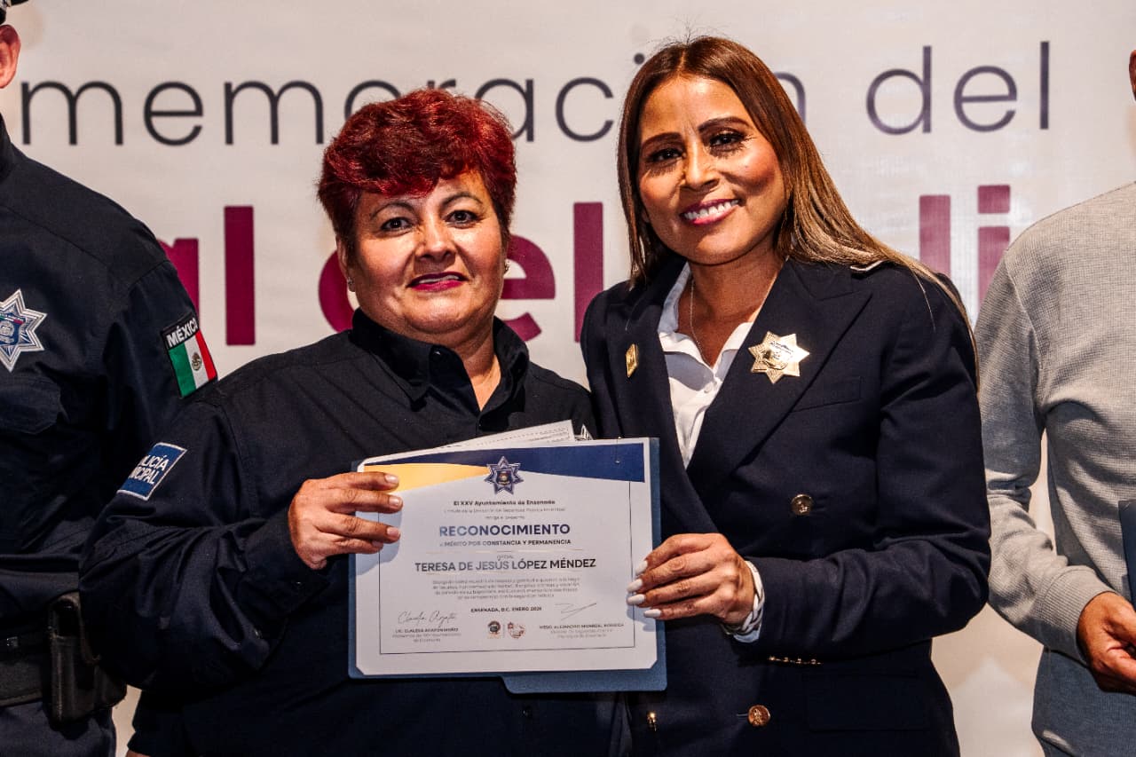 Ensenada, B.C.- Viernes 2 de enero de 2026.- En el marco del Día Internacional del Policía, la presidenta municipal Claudia Agatón anunció un incremento del 10 por ciento al salario del personal policial en activo, así como la integración del bono de riesgo al sueldo base, como parte de la política de dignificación, justicia laboral y reconocimiento a quienes todos los días cuidan la paz y la seguridad de las y los ensenadenses.