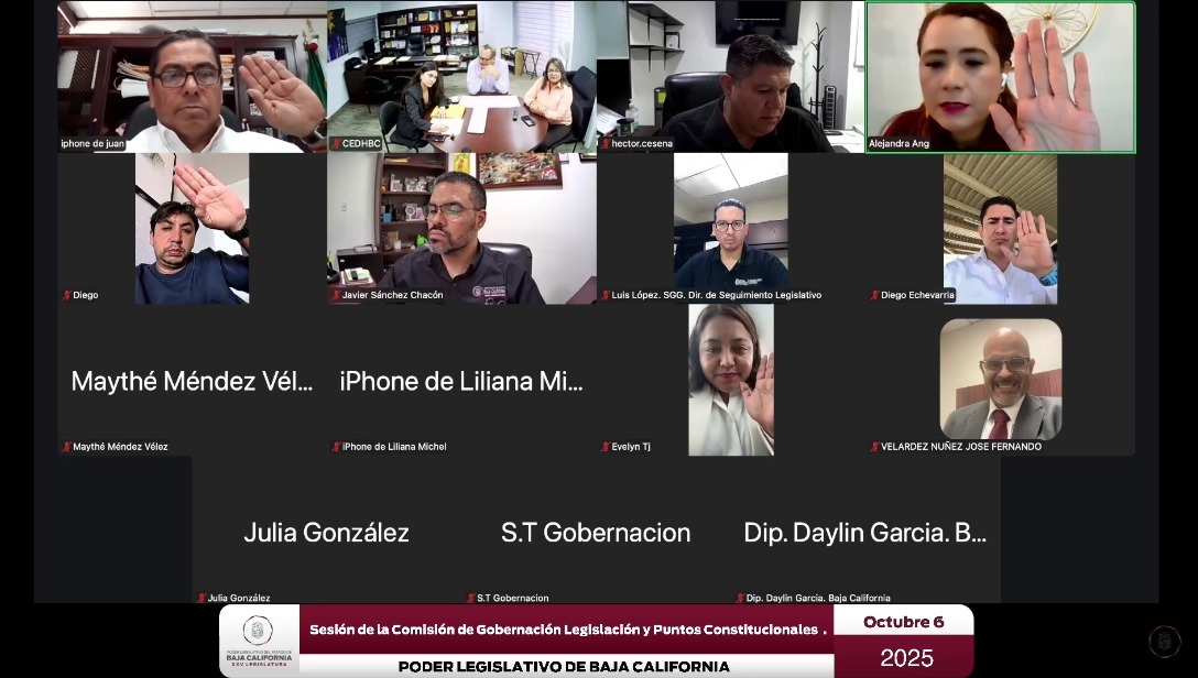 En sesión ordinaria la Comisión de Gobernación, Legislación y Puntos Constitucionales del Congreso del Estado aprobó dos dictámenes clave para el fortalecimiento institucional de Baja California: la integración del nuevo Consejo Consultivo de la Comisión Estatal de los Derechos Humanos y la ratificación del nombramiento de la titular de la Secretaría Anticorrupción y Buen Gobierno.