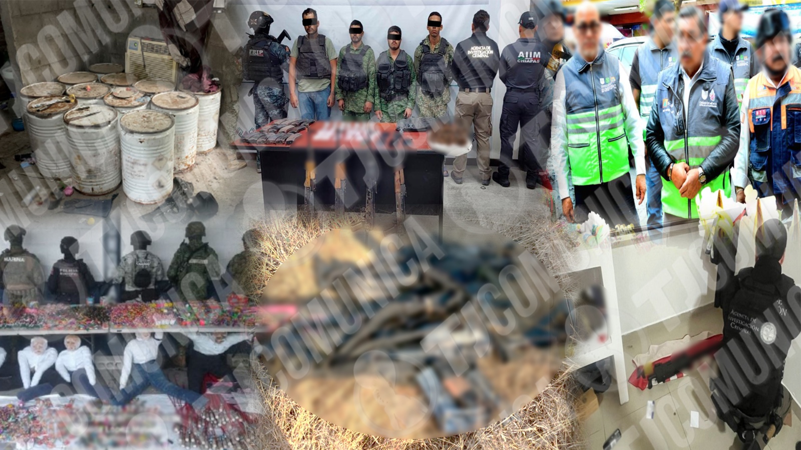 En Jiquipilas, Chiapas elementos de Guardia Nacional (GN), Ejército Mexicano, Fiscalía y Policía Estatal detuvieron a cuatro personas, les aseguraron cuatro armas largas, 14 cargadores, 350 cartuchos, diversas dosis de droga, cinco chalecos tácticos, ponchallantas y un vehículo.