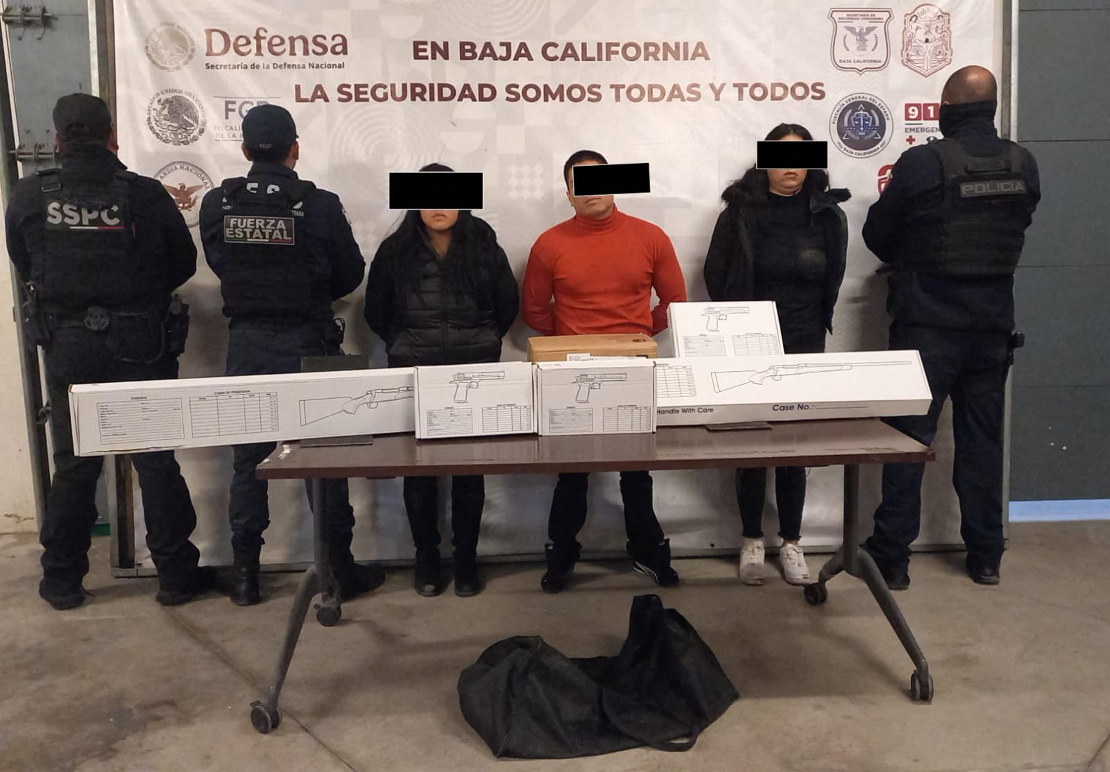 En el sitio fueron detenidas tres personas, identificadas únicamente como N, N y N, quienes viajaban a bordo del vehículo. Todos fueron puestos a disposición de la autoridad correspondiente junto con el armamento asegurado.