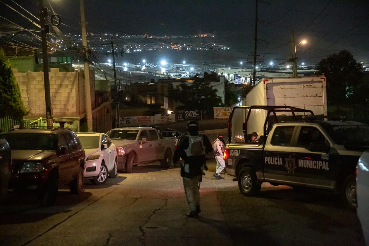 Municipal detiene a delincuentes que robaron con violencia un hotel en Tijuana; se les decomisó arm4s y un auto robado.