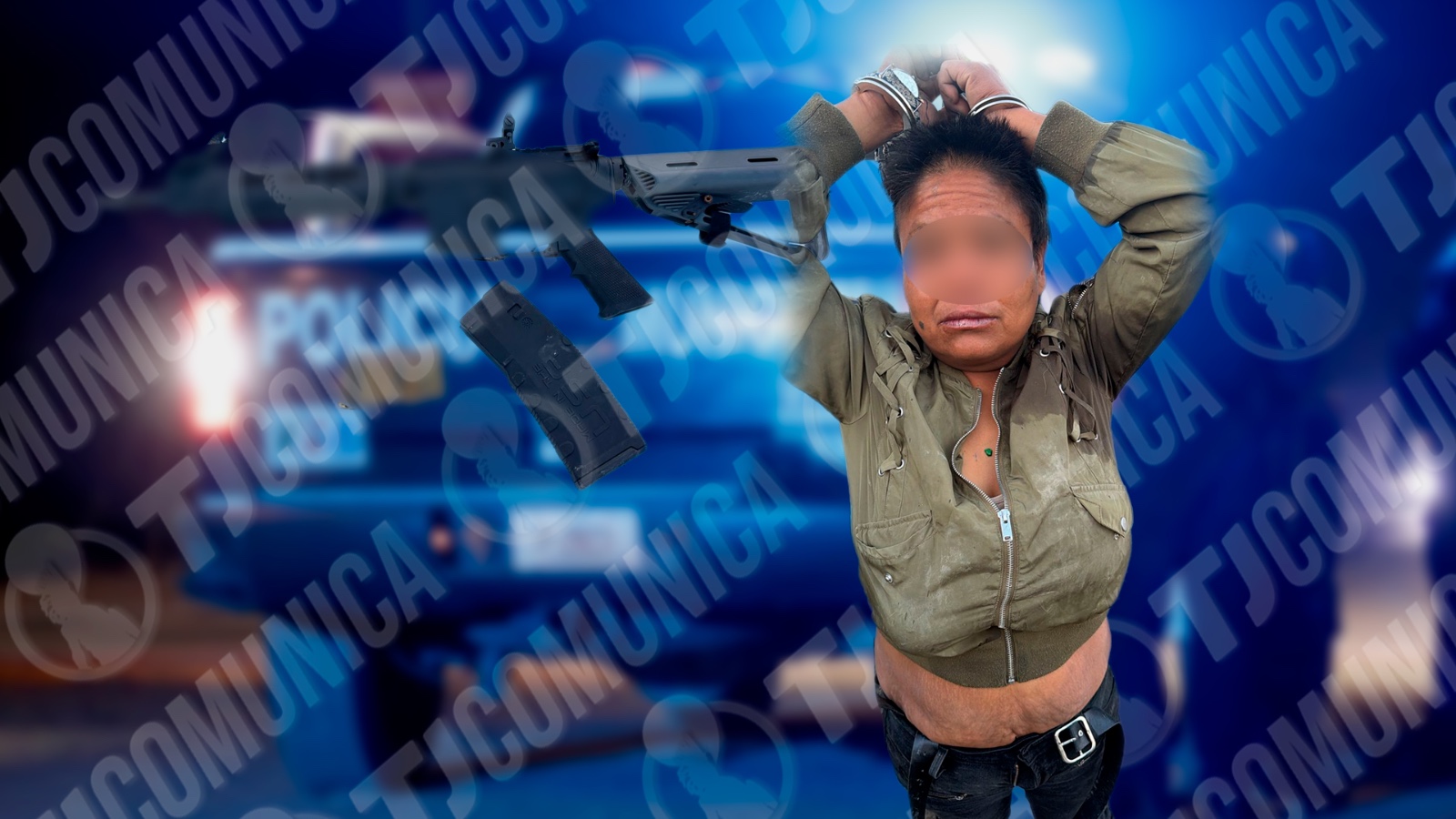 De acuerdo con el reporte policial, los hechos ocurrieron, cuando elementos de la Policía Municipal de Tijuana realizaban un recorrido de vigilancia y observaron a una mujer caminando sobre la calle mientras sostenía un arma larga. Se le decomisó un fusil de metal color negro con culata de plástico gris, sin marca ni número de serie visible.