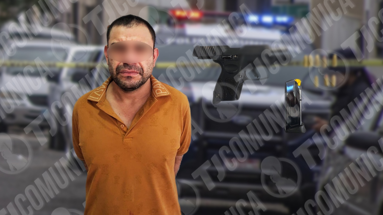 Al arribar al sitio, los oficiales observaron a un sujeto que se encontraba parado sobre la banqueta, quien al notar la presencia policial intentó huir ingresando a un pasillo de los departamentos; sin embargo, fue detenido por los agentes, ya que portaba un arma de fuego fajada en la espalda.
