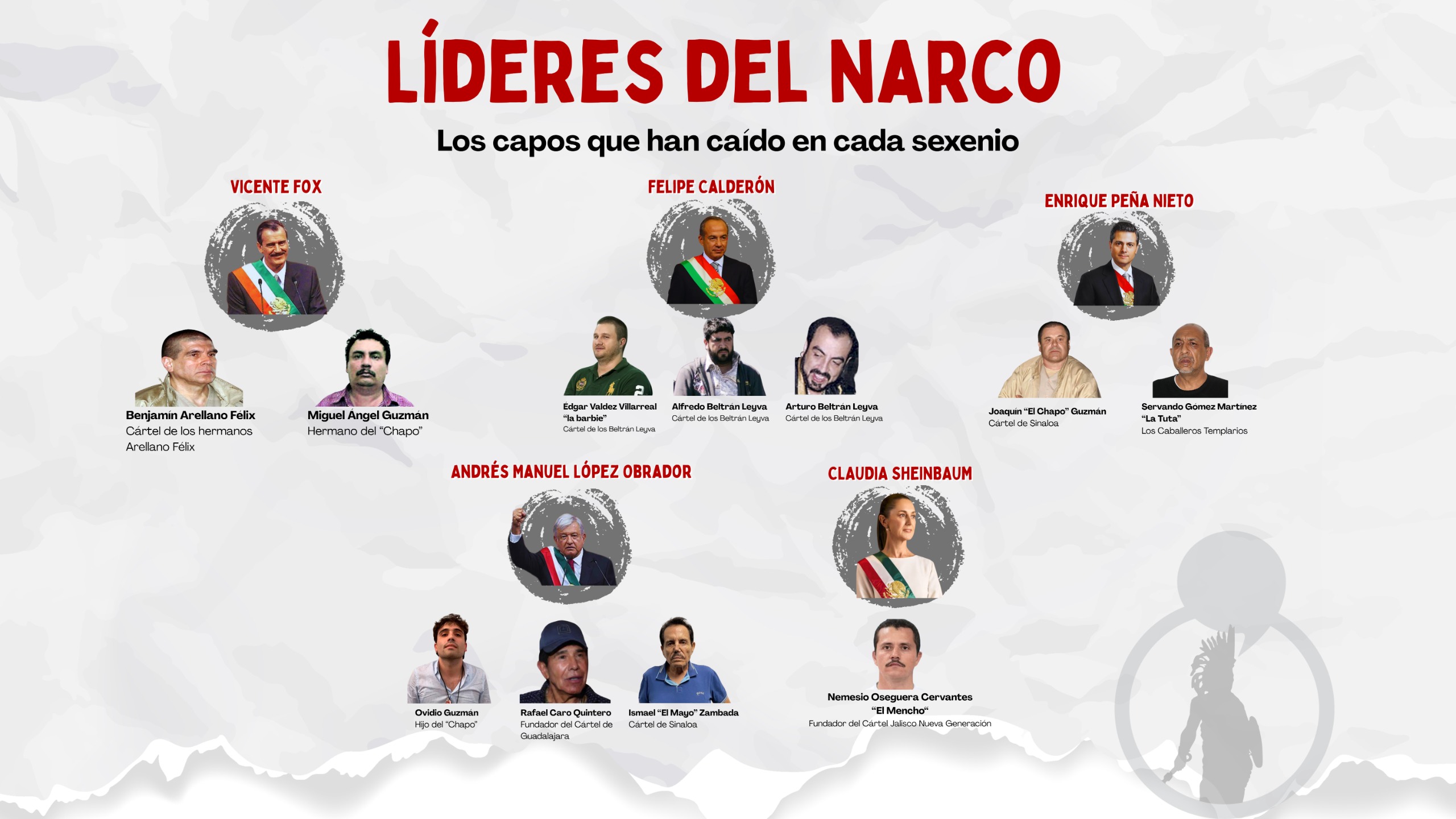 A lo largo de los últimos sexenios en México, distintos gobiernos federales han asestado golpes relevantes al crimen organizado mediante la detención o abatimiento de algunos de los líderes más influyentes del narcotráfico, hechos que han marcado la estrategia de seguridad de cada administración.