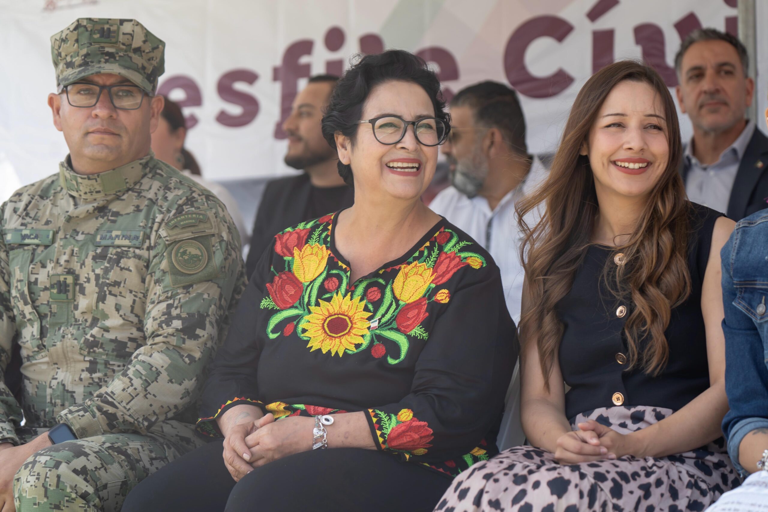 La alcaldesa Rocio Adame Muñoz, acompañada de su gabinete, contempló el desfile desde un templete ubicado sobre la Calle Mar Adriático, reconociendo la participación de todos los contingentes y destacando la importancia de mantener viva esta tradición para la comunidad rosaritense.