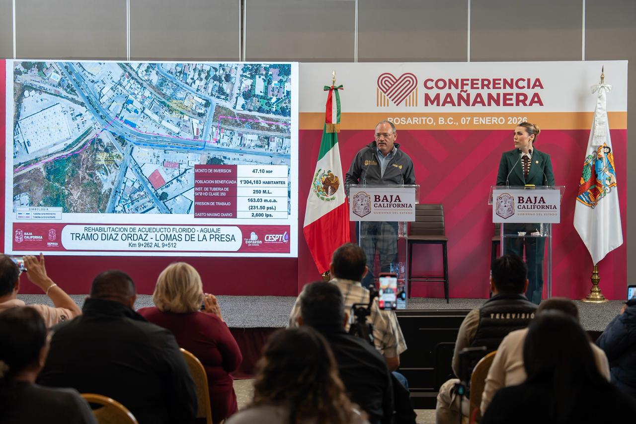 Durante la conferencia mañanera encabezada por la gobernadora Marina del Pilar Ávila Olmeda, el titular de la Comisión Estatal de Servicios Públicos de Tijuana y Playas de Rosarito (CESPT), Jesús García Castro, informó que se llevará a cabo el corte programado de agua potable por un periodo aproximado de 54 horas, el cual afectará a 691 colonias de ambos municipios.