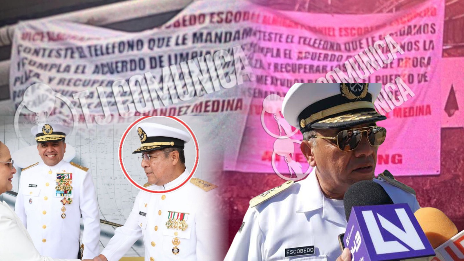 Crimen organizado continúa con reclamos mediante narcomantas; ahora el CJ le exige al vicealmirante de la Marina, Juan Carlos Vera Minjares, encargado del puerto de Ensenada, que conteste el teléfono que le dieron y que cumpla con ayudar a limpiar la plaza y a recuperar los kilos de dr0ga que se robaron.
