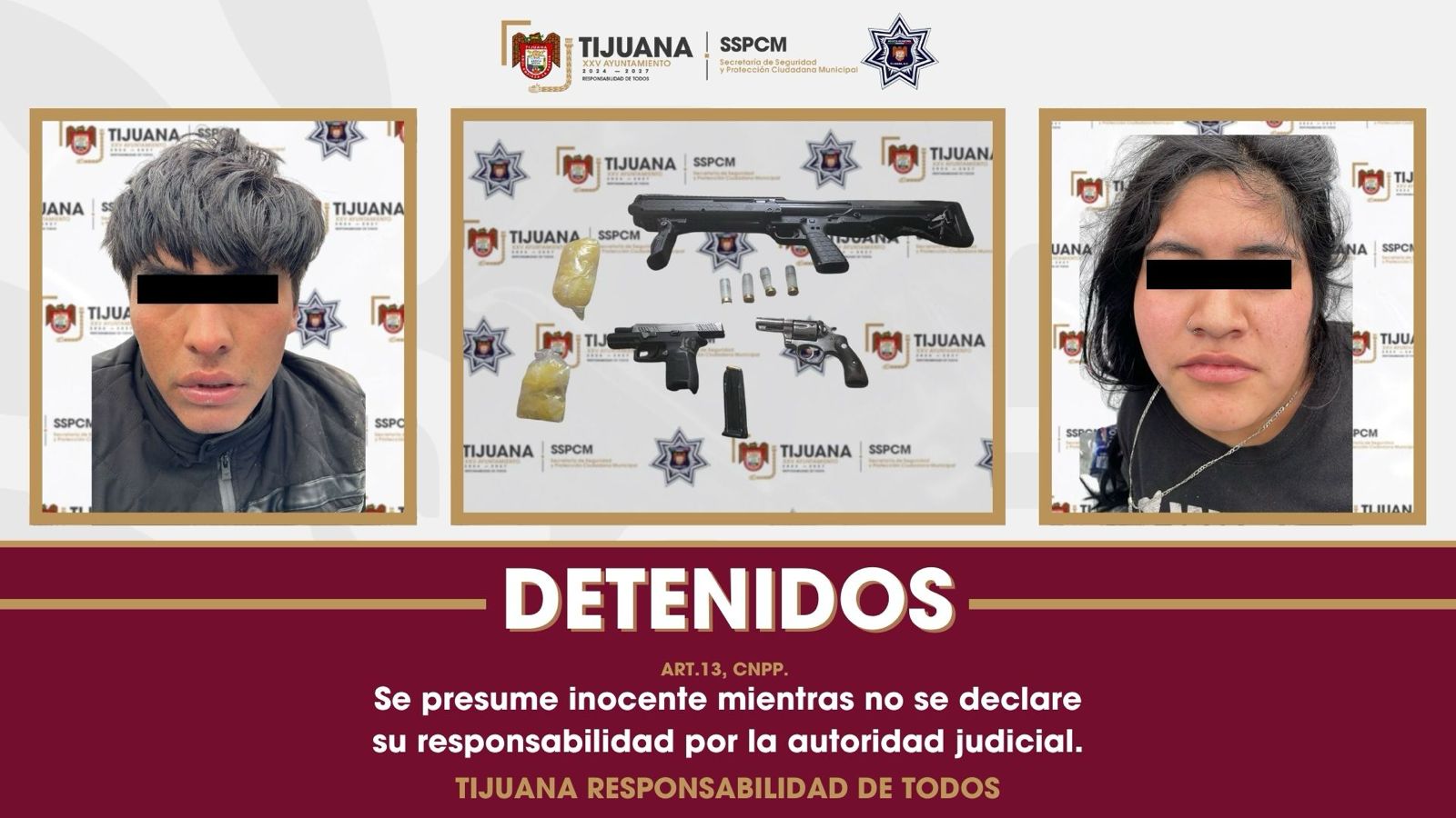 Las personas detenidas identificadas como Jesús “N” y Mayra “N”, fueron puestas a disposición de la autoridad investigadora correspondiente, la cual evaluará su posible relación con los delitos que se les imputan. Además, se aseguraron tres armas de fuego y una sustancia granular que parece similar a estupefacientes, elementos que serán analizados en el marco de la investigación en curso. La SSPCM continúa reafirmando su compromiso con la seguridad de Tijuana y la erradicación de la impunidad.
