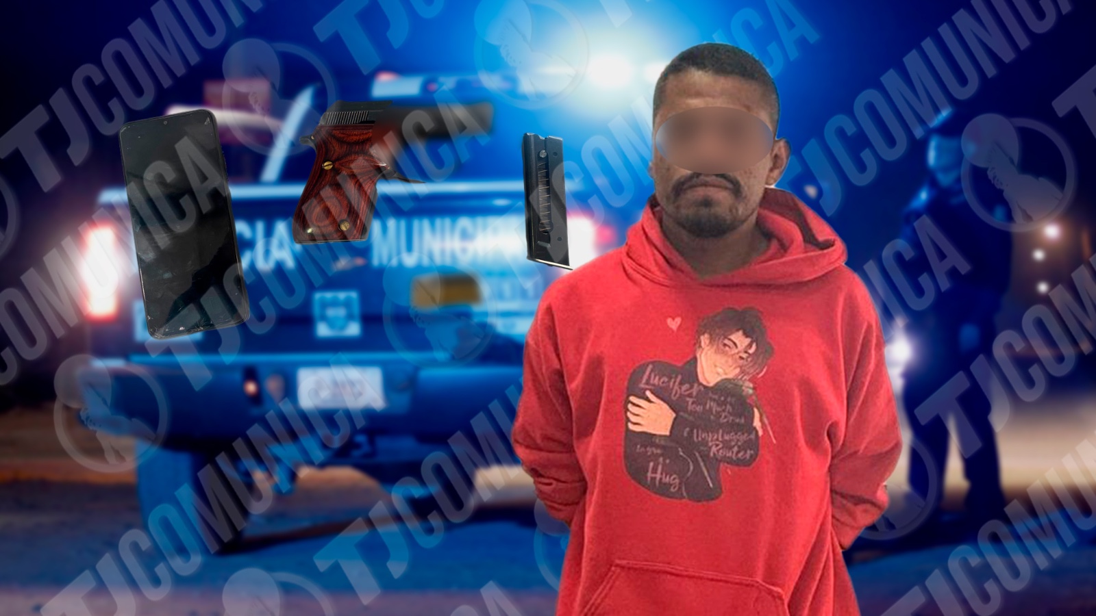 La tarde del 5 de noviembre, en la calle Montes Escandinavos y Del Fresno, en Lomas Conjunto Residencial, elementos de la Policía Municipal de Tijuana fueron interceptados por una joven que denunció ser víctima de un robo con violencia por parte de un sujeto con sudadera roja y capucha, quien la despojó de su dinero y su celular.