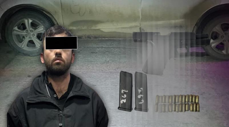 Un hombre fue detenido la madrugada de este sábado por la presunta portación ilegal de un arm4 de fuego, además de verse involucrado en un choque vehicular ocurrido sobre el bulevar 2000, a la altura del fraccionamiento Puerta Plata, en el Distrito Natura 2000.