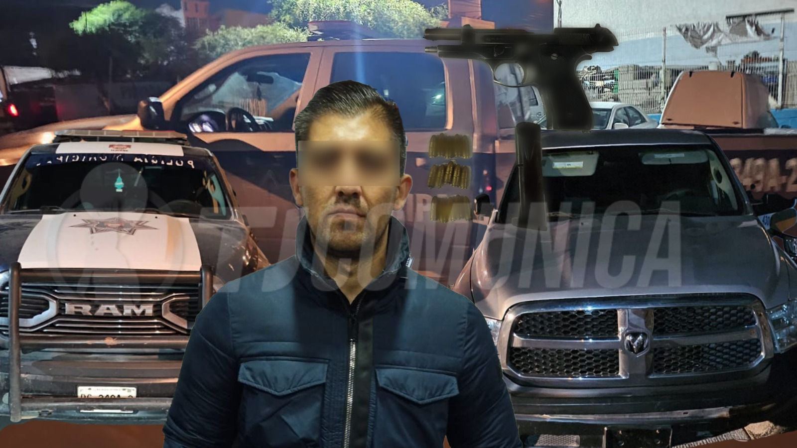 El mando fue identificado como Miguel Ángel N y se le decomisó un arma de fuego tipo pistola y 15 cartuchos útiles cal 9mm, además de unas esposas de metal y un vehículo tipo pick up Dodge RAM color gris sin placas de circulación.