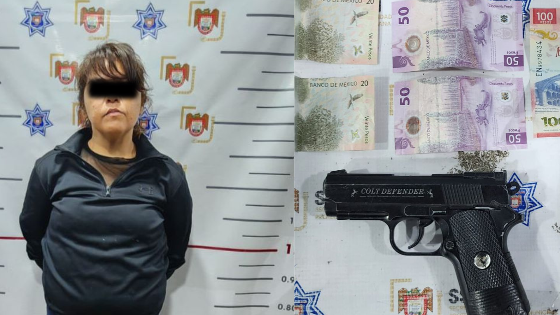 Al momento en que el acompañante descendió del vehículo, la conductora aceleró hasta encontrar a los oficiales. En la inspección, los agentes encontraron a Anel “N” de 32 años, en posesión de una pistola y 240 pesos en efectivo, presuntamente producto del robo.