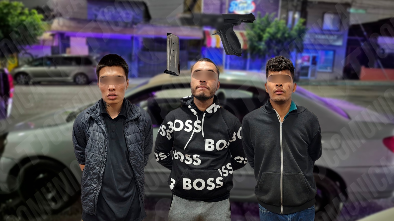 Los hombres se identificaron como: Carlos “N”, de 33 años de edad, originario de Tijuana; Jesús “N”, de 20 años, originario de Morelos; José “N”, de 23 años, originario de Sonora.