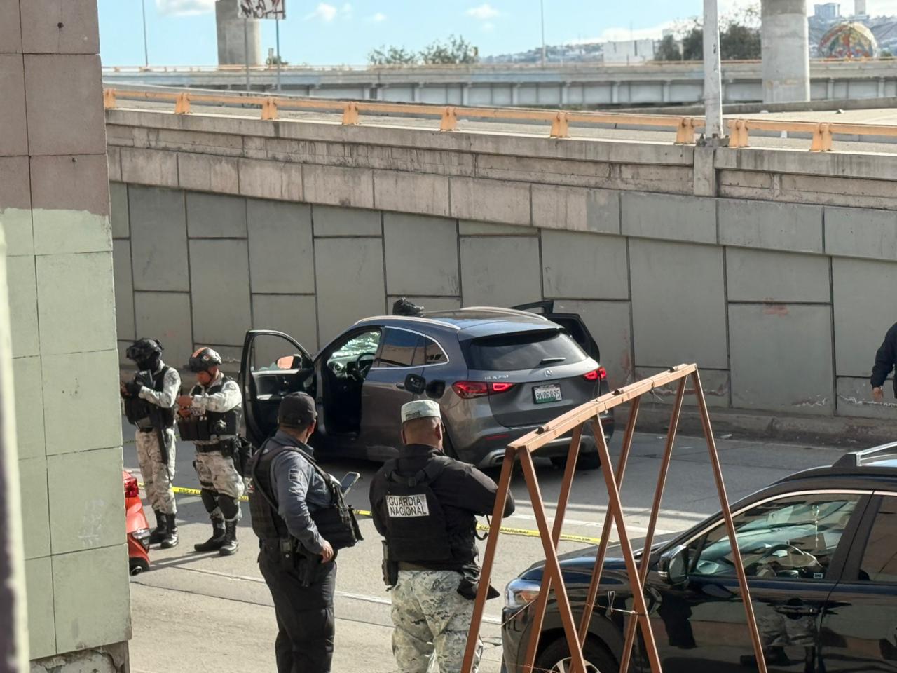 Una camioneta Mercedes-Benz color gris fue atacada a disparos al salir de la línea de San Ysidro.