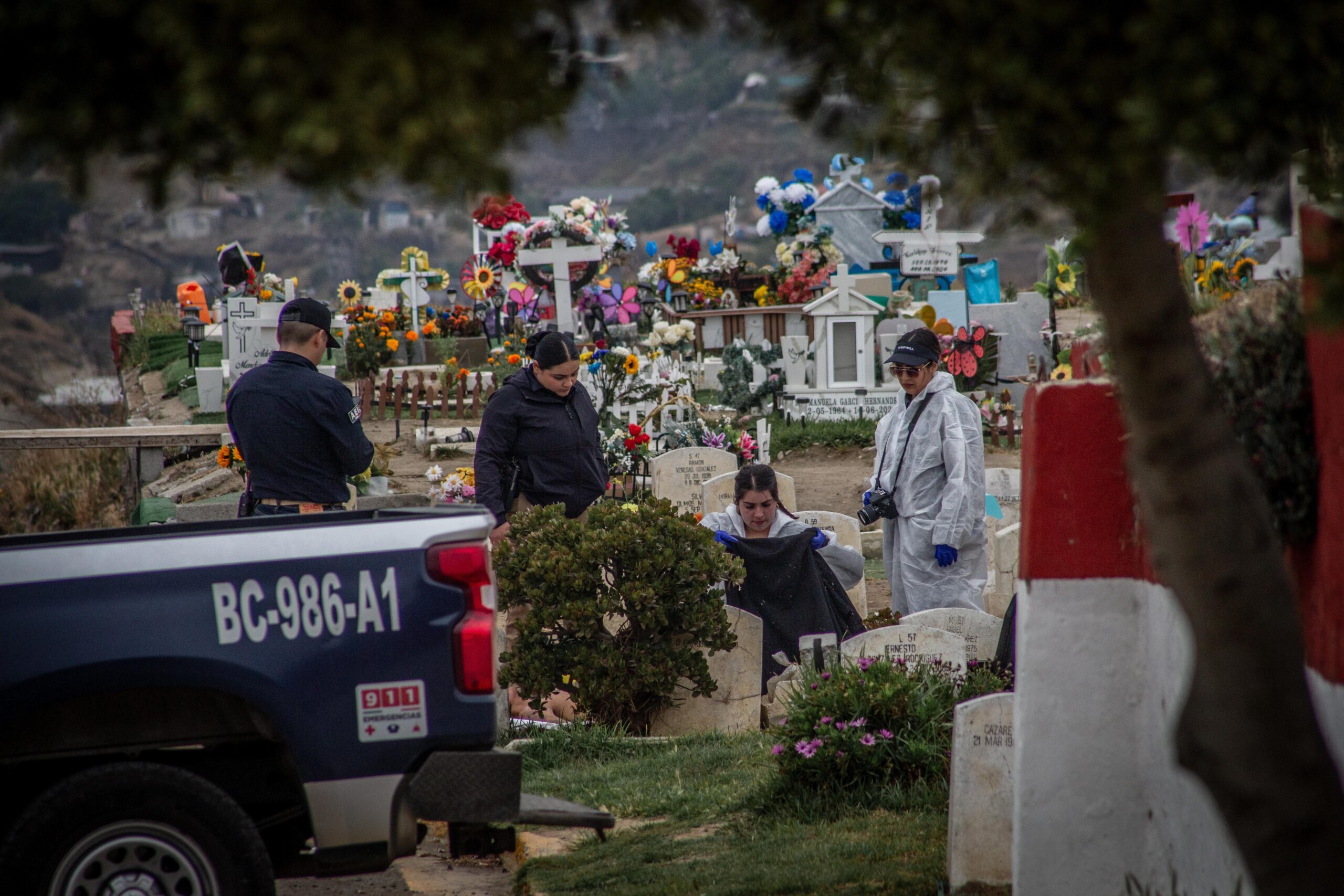 De acuerdo a información extraoficial, fueron los trabajadores del cementerio, los que alertaron a las autoridades de este hecho violento.