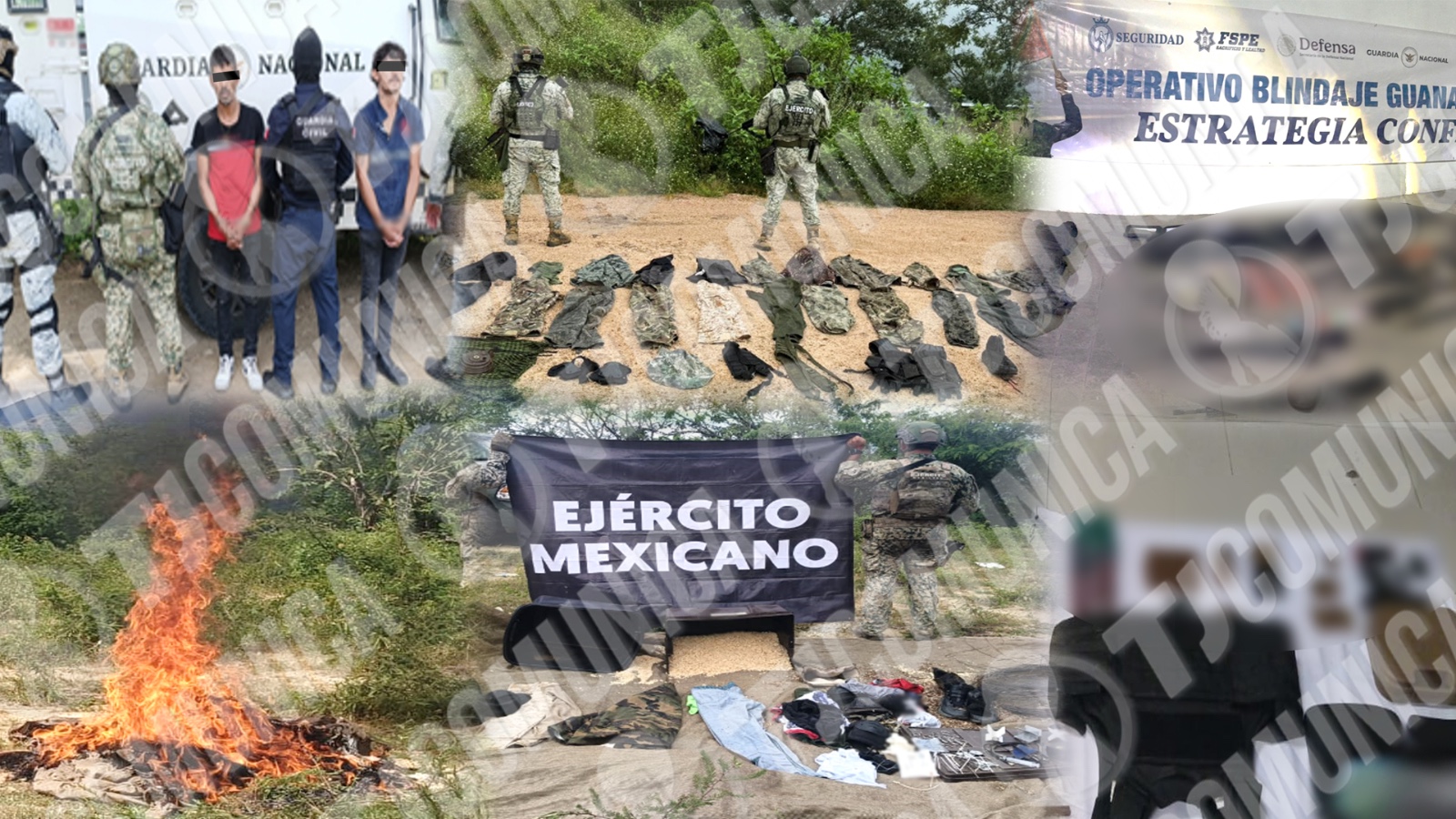 Sinaloa, en Badiraguato, en el poblado Bacacoragua, elementos del Ejército Mexicano localizaron e inhabilitaron tres campamentos y aseguraron un 4rma larga, siete cargadores, 1,723 cartuchos, cinco kilos de m4rihu4na, equipo táctico y un vehículo con impactos de proyectil de 4rma de fuego.