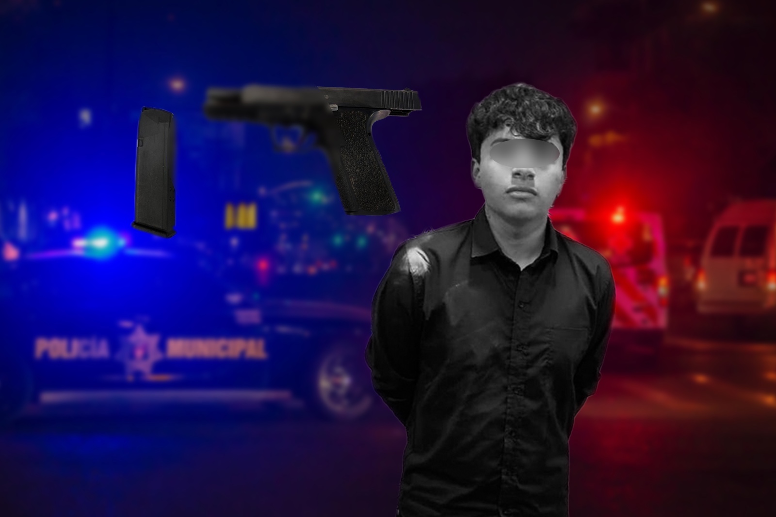 Luego de una denuncia por detonaciones de arma de fuego en una fiesta en la calle 3ra y calle de las Higueras, en la colonia Cañadas del Florido, la Policía Municipal capturó a Emilio “N”, de 17 años de edad, originario de Tijuana, por portar un arma de fuego tipo pistola, marca Glock, modelo 22, calibre .40.
