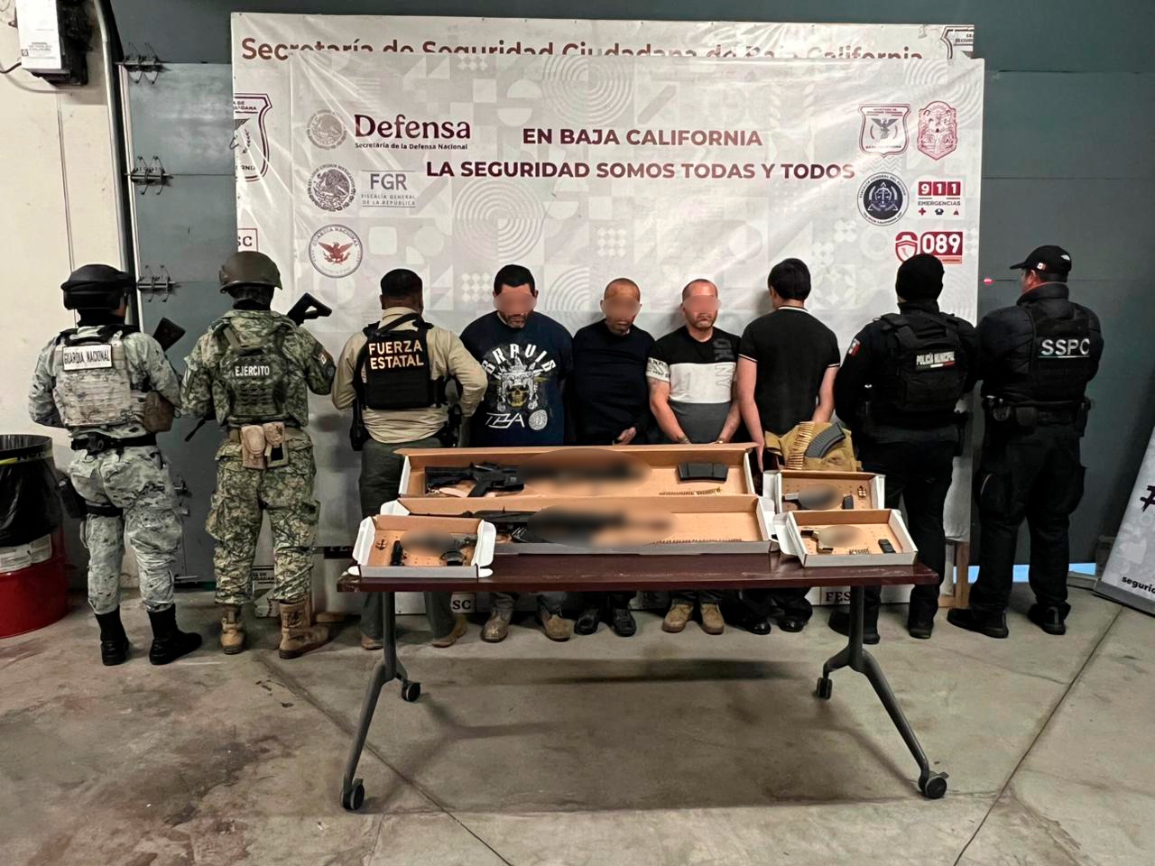 Es por ello que Eduardo “N”, originario de Santana, California, de 43 años de edad; Raúl “N”, originario de Michoacán, de 50 años de edad; Gustavo “N”, originario de Tijuana, de 16 años de edad; y Roberto “N”, originario de Los Ángeles, California, de 45 años de edad, fueron detenidos y trasladados a la Fiscalía General de la República para iniciar con las carpetas correspondientes.