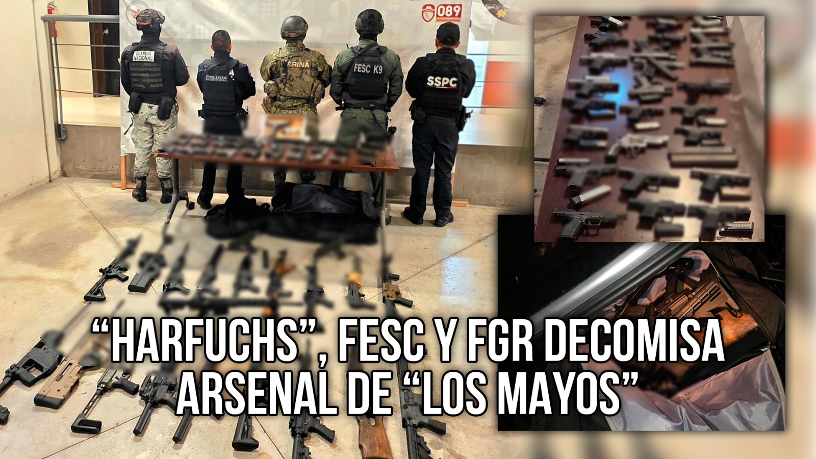 Un operativo conjunto entre la Fuerza Estatal de Seguridad Ciudadana (FESC), elementos de la Secretaría de la Defensa Nacional (Defensa), Secretaría de Marina (Semar), Fiscalía General de la República (FGR), Guardia Nacional (GN) y la Secretaría de Seguridad y Protección Ciudadana (SSPC) conocidos como “Los Harfuchs”, aseguró de 21 armas largas, 30 armas cortas y 26 cargadores, localizados al interior de un vehículo abandonado.