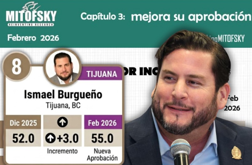 El presidente municipal de Tijuana, Ismael Burgueño Ruiz, se colocó entre los diez presidentes municipales con mayor incremento en su nivel de aprobación ciudadana a nivel nacional, de acuerdo con el más reciente ranking de Mitofsky correspondiente a febrero de 2026.
