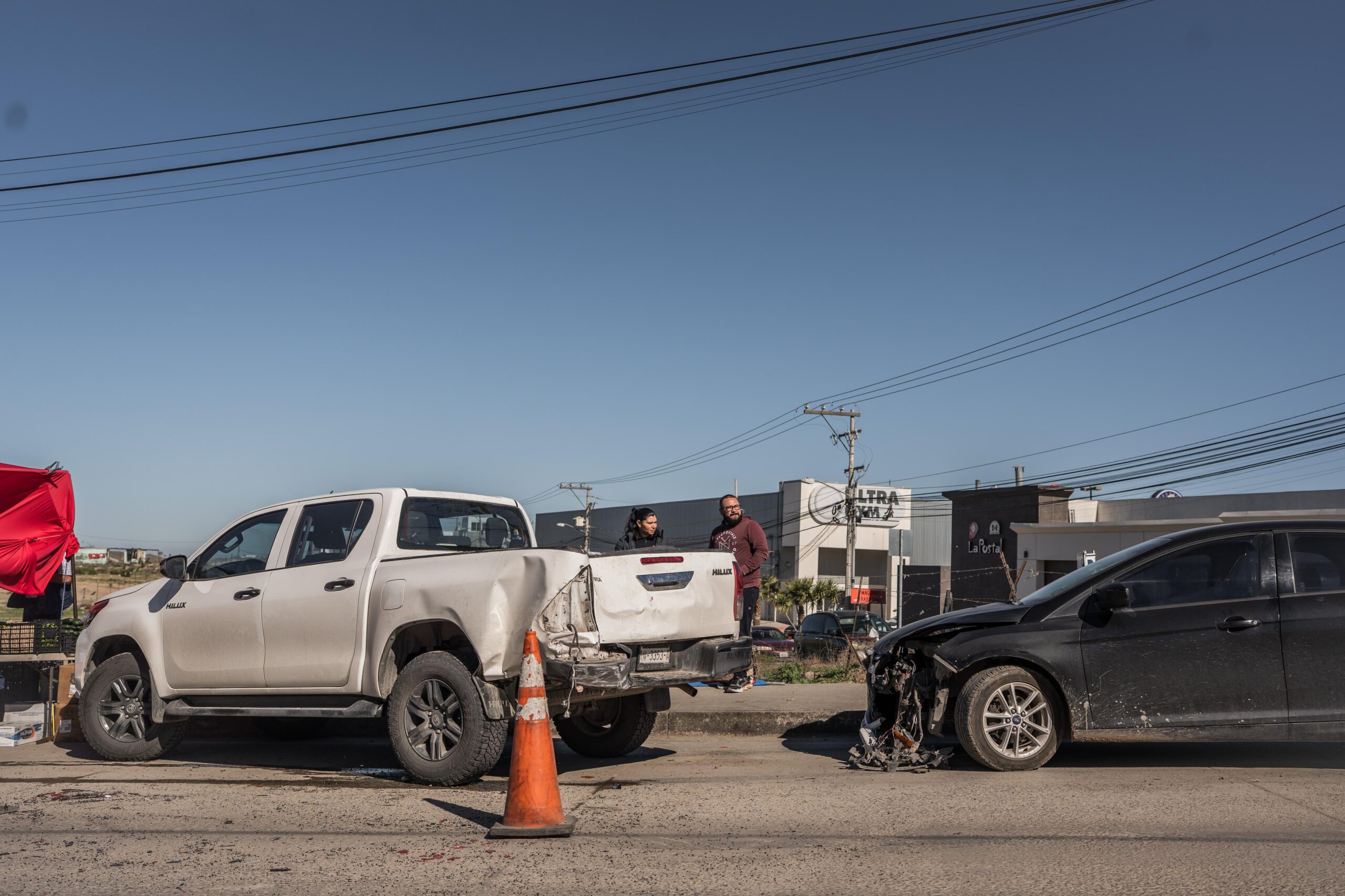 De acuerdo a Ariel Gilberto Llanos, comerciante afectado, comentó que dos autos venían a exceso de velocidad aparentemente jugando a las carreras, cuando una camioneta guinda impactó a dos vehículos y a su puesto ambulante de venta de “pescados y mariscos frescos”.