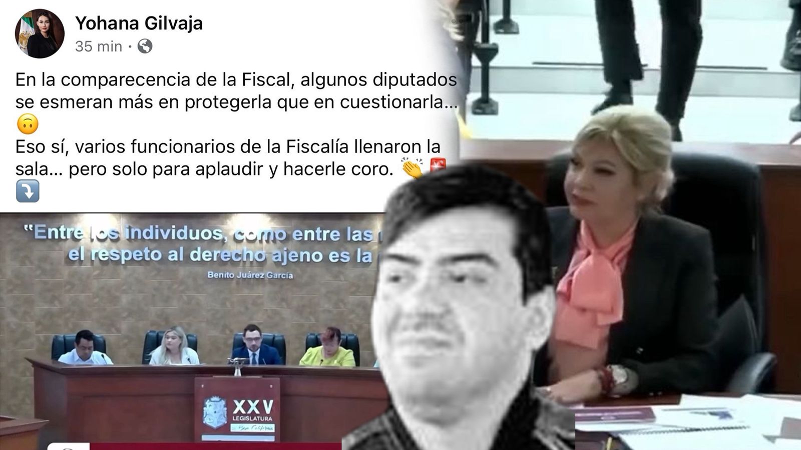 “Algunos diputados se esmeran más en protegerla que en cuestionarla” djio la diputada Yoahan Gilvaja de PT a través de sus redes sociales después de que la Fiscal compareciera ante el Congreso de BC.