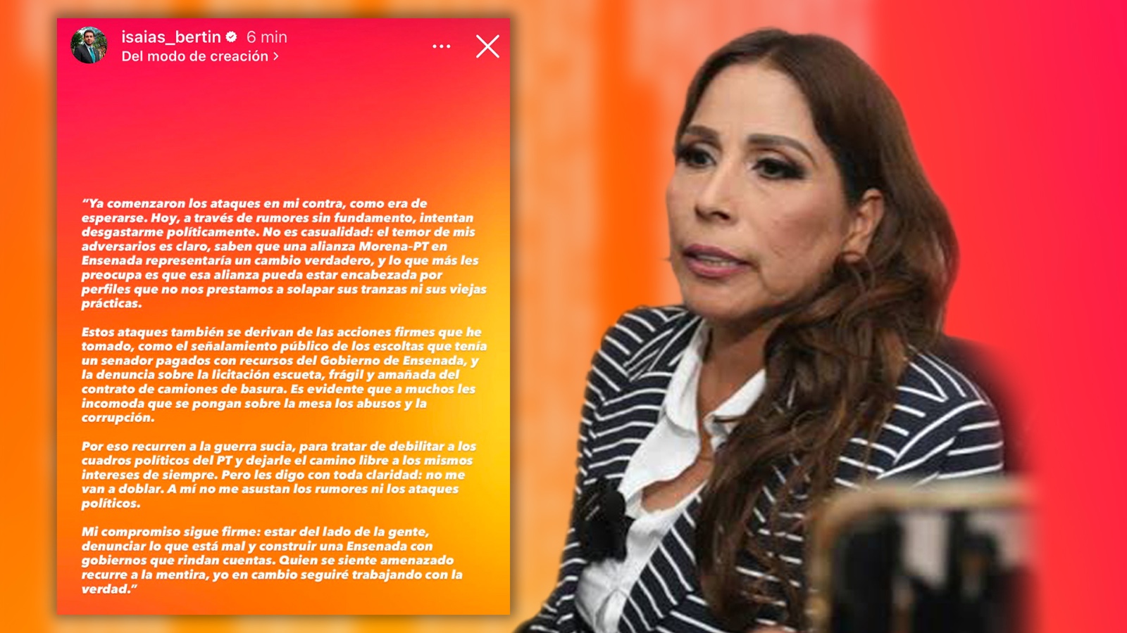 “Ya comenzaron los ataques en mi contra, como era de esperarse. Hoy, a través de rumores sin fundamento, intentan desgastarme políticamente. No es casualidad: el temor de mis adversarios es claro, saben que una alianza Morena-PT en Ensenada representaría un cambio verdadero, y lo que más les preocupa es que esa alianza pueda estar encabezada por perfiles que no nos prestamos a solapar sus tranzas ni sus viejas prácticas”, mencionó Isaías Bertín