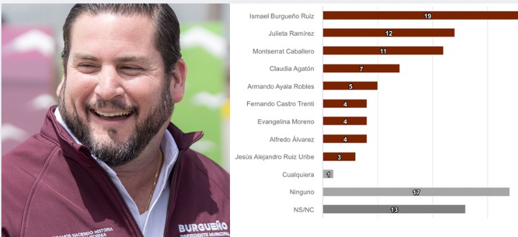 Dentro del proceso interno de Morena, Ismael Burgueño destaca como el aspirante con el saldo de opinión más favorable, con +15 puntos. Le siguen Montserrat Caballero (+11), Juan Carlos Hank (+9), Julieta Ramírez (+9) y Claudia Agatón (+6).