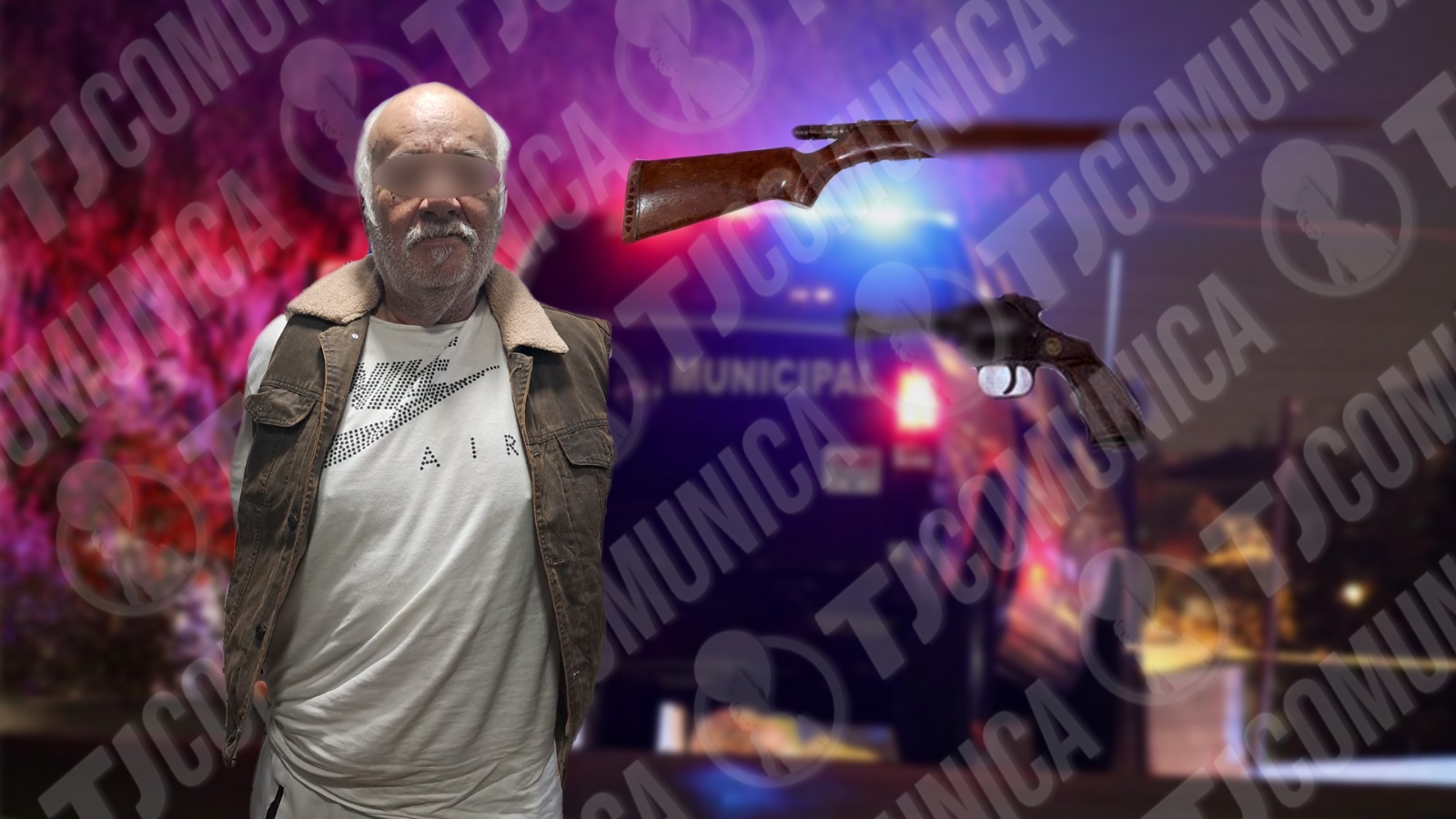 Municipal detiene a abuelito por violencia familiar y posesión de armas en Zona Centro