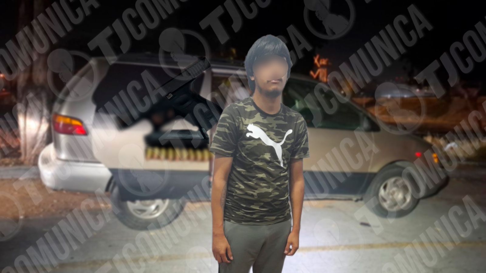 Durante la inspección, los oficiales observaron sobre la guantera del vehículo una pistola Glock calibre .40 AUTO, color negro, con cargador abastecido con 10 cartuchos útiles. El conductor, identificado como Luis Roberto N de 23 años y originario de Tijuana, fue asegurado en el lugar y puesto a disposición de la Fiscalía General de la República, luego de que se le informaron sus derechos constitucionales.