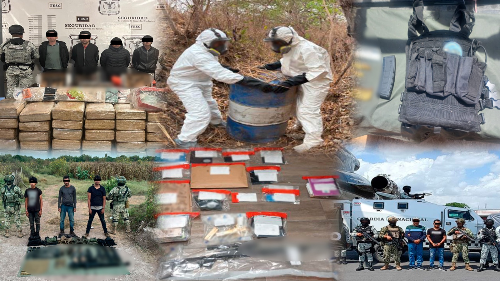 En Sinaloa en el municipio de Elota, se detuvo a tres personas, se aseguraron 12 armas, un aditamento lanzagranadas, 43 cargadores, 1,062 cartuchos, cinco granadas, un fusil Barret y nueve chalecos tácticos. y en el pueblo de Cosalá, se localizaron e inhabilitaron nueve áreas de concentración de material diverso para la elaboración de metanfetamina, donde aseguraron 3,150 litros de sustancias para la fabricación de drogas y dos reactores de síntesis orgánica. La afectación económica a las organizaciones delictivas es de 67 millones de pesos.