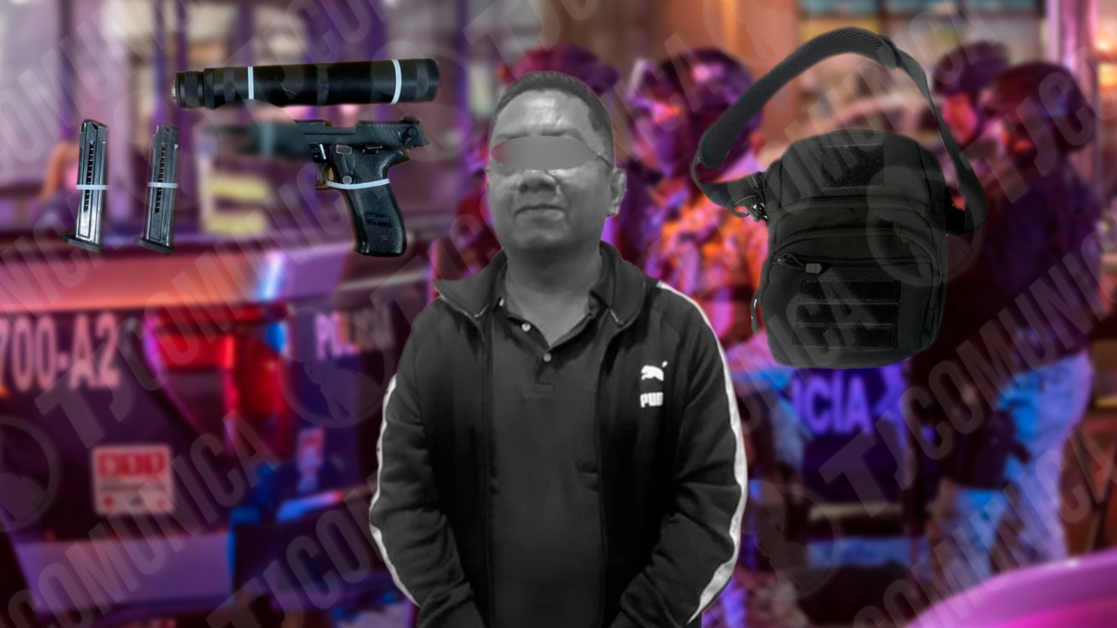 Con la descripción del presunto responsable, las autoridades intervinieron a una persona con las características señaladas, al realizarle una inspección precautoria no se le encontró nada ilícito, sin embargo, al revisar su mochila localizaron un arma de fuego tipo pistola (Color gris con negro, marca SIG SAUER, con leyenda GSG Made in Germany, Cal. 22), dos cargadores de la misma marca, 20 cartuchos útiles, un silenciador y un porta arma, motivo por el cual es detenido.