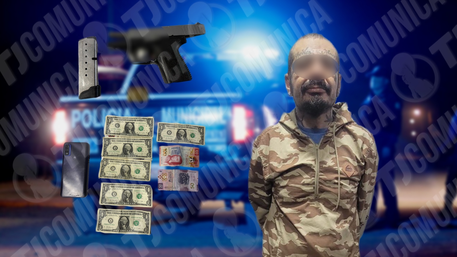 Un hombre fue detenido por elementos de la Policía Municipal de Tijuana tras ser señalado como responsable de un robo con violencia y portación de arma de fuego, ocurrido en la colonia El Pedregal.
