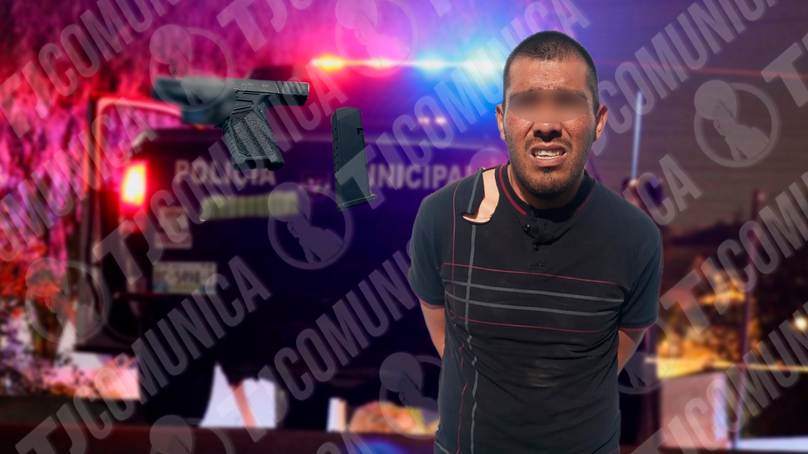 Elementos de la Policía Municipal de Tijuana detuvieron a un hombre que portaba un arma de fuego en la colonia Rancho Las Flores, primera sección, en Tijuana.