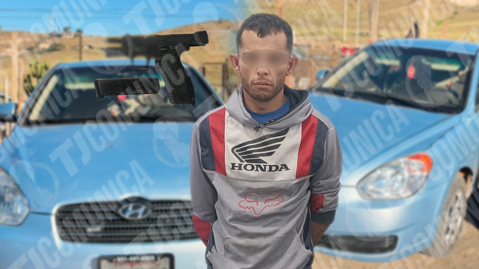 De acuerdo con el reporte policial, los agentes marcaron el alto a un vehículo Hyundai sedán color azul por una falta al reglamento de tránsito. Al acercarse al conductor, observaron a simple vista un 4rma de fu3go tipo pist0la calibre 9 milímetros en el interior del automóvil.