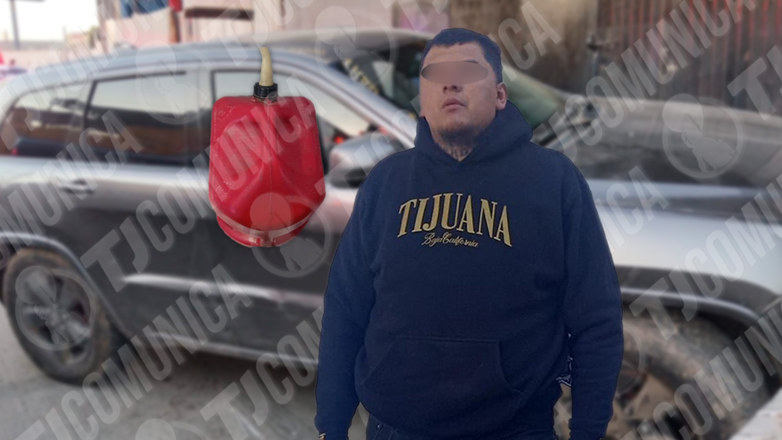 Los agentes intervinieron y aseguraron a quien se identificó como Alonso “N” de 26 años de edad, originario de Tijuana. Durante una inspección, localizaron en el interior del vehículo una garrafa de plástico color rojo que contenía gasolina.