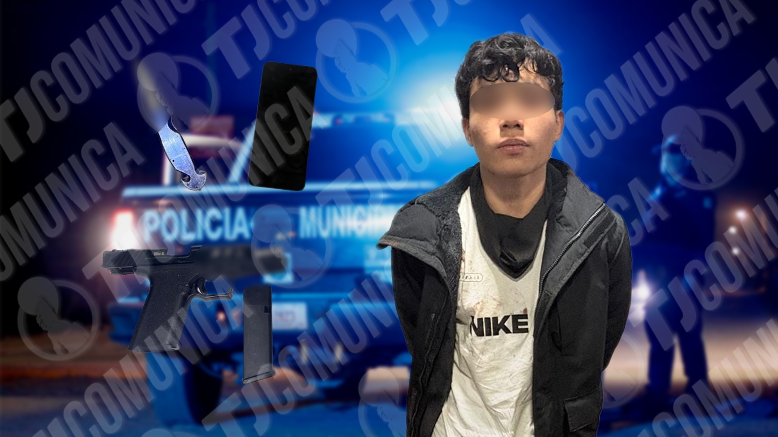 El detenido fue identificado como José “N”, de 16 años de edad, quien también utilizaba otra identidad. En el lugar se aseguraron un arma de fuego tipo pistola con cargador y cartuchos útiles, una navaja con empuñadura metálica y un teléfono celular.
