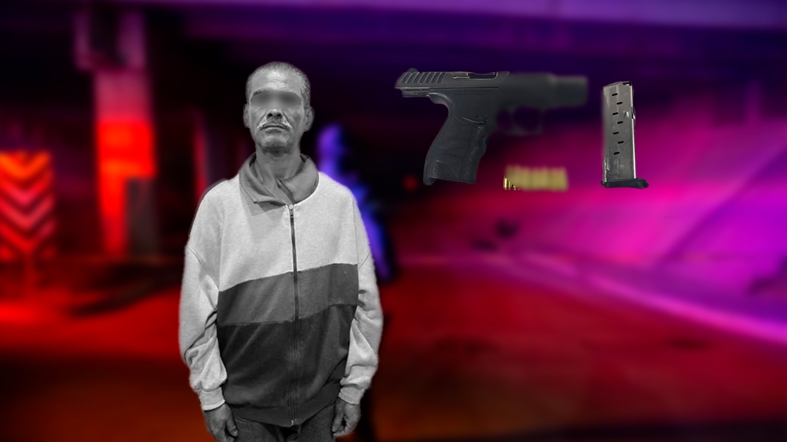 Los oficiales le ordenaron detenerse y, al bajarse del vehículo, el sujeto intentó huir a pie, pero fue detenido. Al realizar una inspección en el interior del automóvil, localizaron en el área del portavasos un arma de fuego tipo pistola, marca Walther, calibre 9 mm, abastecida con un cargador que contenía siete cartuchos útiles.