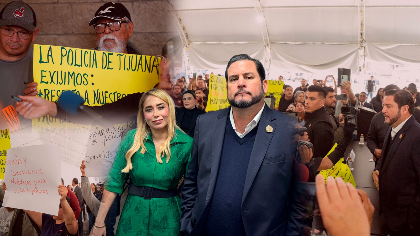 Durante un evento cívico conmemorativo por el Día de la Bandera, un grupo de policías retirados y viudas de oficiales caídos en cumplimiento de su deber se manifestó para llamar la atención del alcalde de Tijuana, Ismael Burgueño.