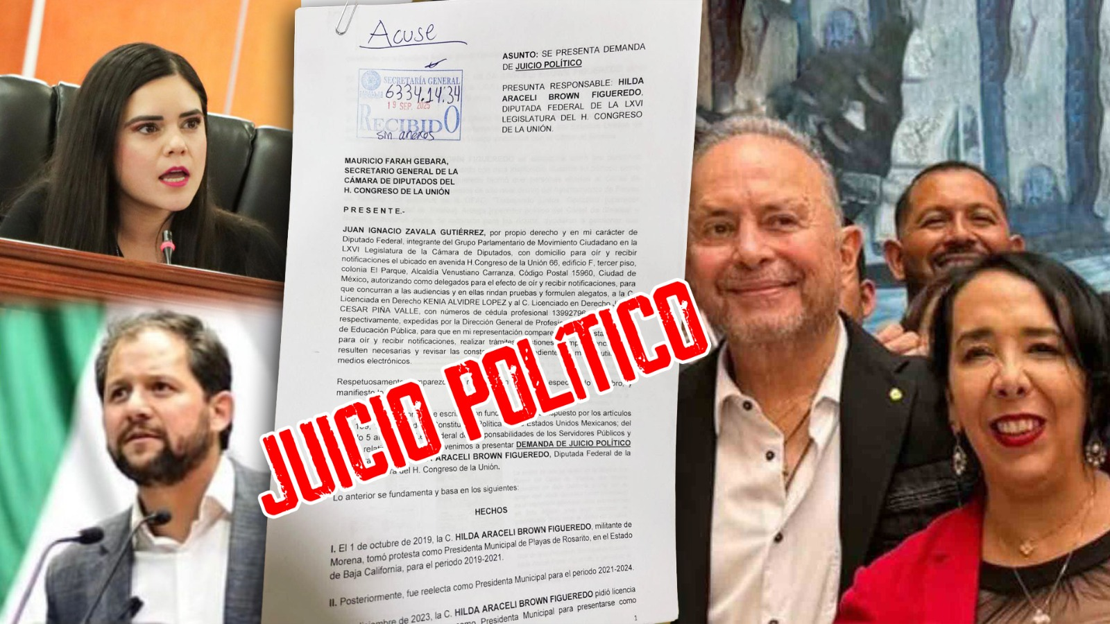 La Diputada y Coordinadora de Movimiento Ciudadano en Baja California, Daylín García Ruvalcaba, informó que el Grupo Parlamentario de Movimiento Ciudadano a través del Diputado Juan Zavala presentó ante la Cámara de Diputados, en San Lázaro, una solicitud de juicio político en contra de la diputada federal de Morena, Hilda Araceli Brown Figueredo.