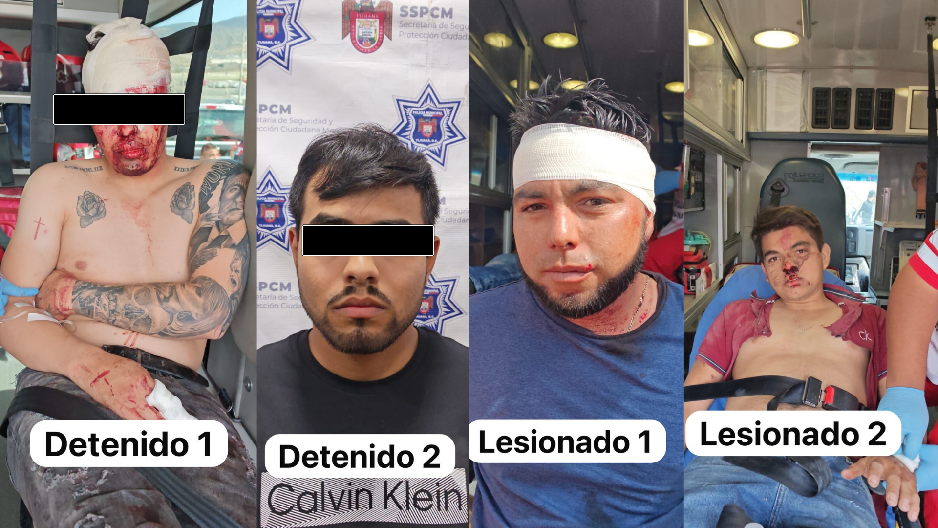 Los detenidos fueron identificados como Juan Manuel, de 24 años, y Fernando, también de 24, ambos originarios de Tijuana. Las víctimas, Flavio, de 19 años, y José, de 33, fueron atendidas por la Cruz Roja y trasladadas al Hospital General.