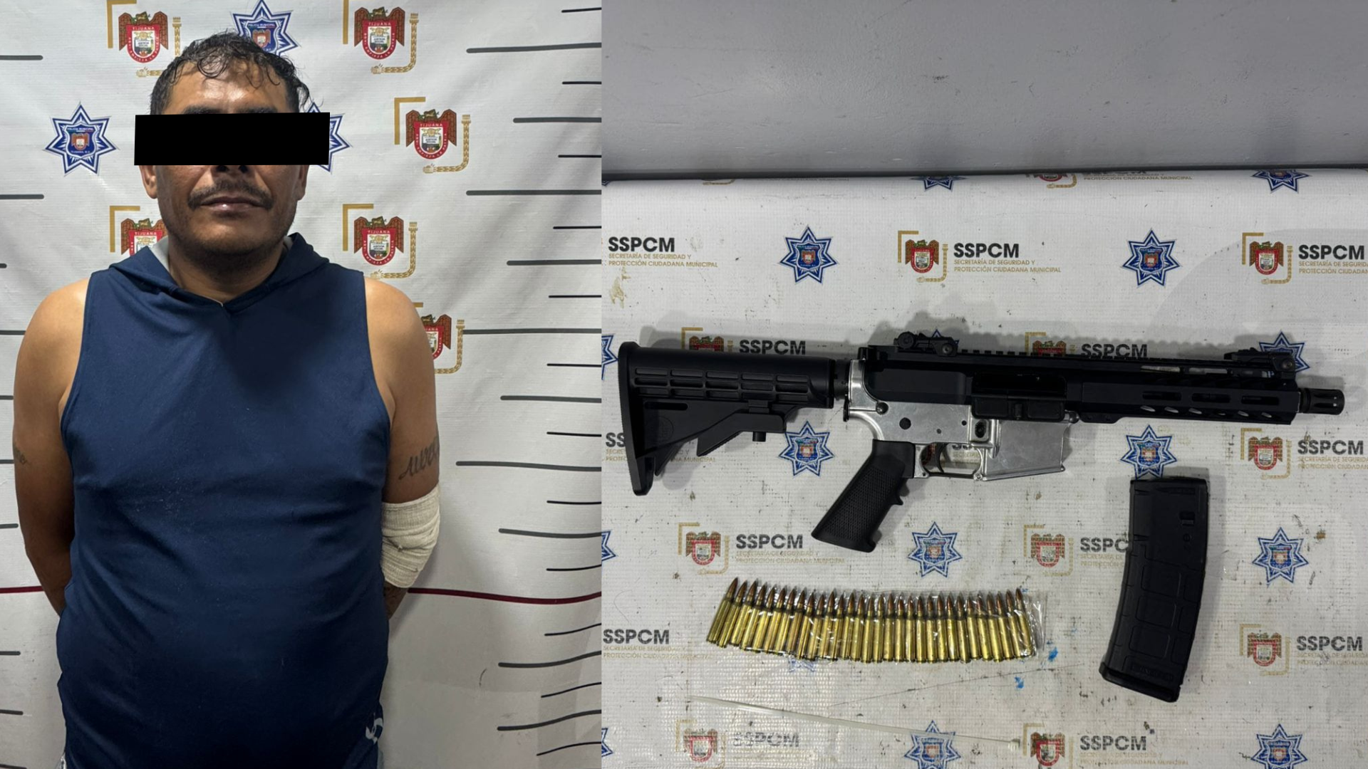 Al momento de su detención, el sujeto tenía manchas de s3ngr4 y portaba un arma de fuego tipo fusil calibre .223, junto con cartuchos útiles y un cargador.