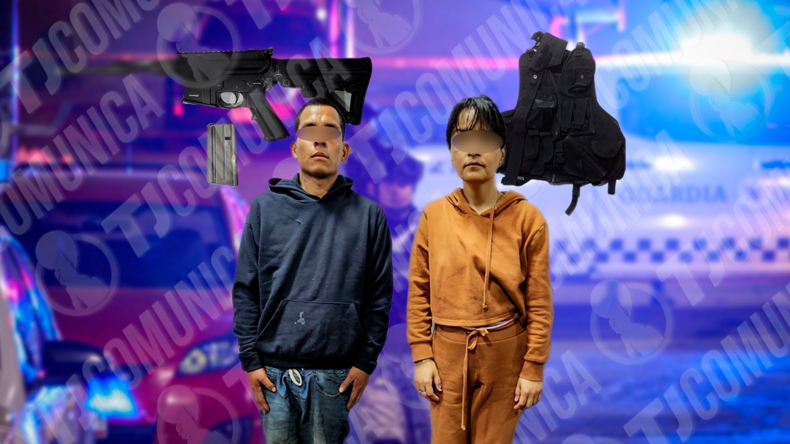 Los policías lograron la detención de Gerardo “A”, de 23 años y originario de Baja California Sur, a quien le aseguraron un arma de fuego tipo fusil (color negro, marca Smith & Wesson) con un cargador metálico abastecido con cinco cartuchos útiles, y un chaleco táctico con mayas balísticas. De igual manera, Beatriz Adriana “F”, de 39 años y originaria de Tijuana, fue detenida con cinco cartuchos útiles.