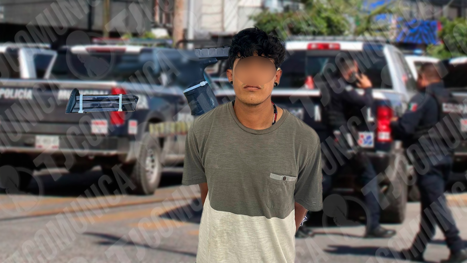 Los hechos se registraron la tarde de hoy, 25 de agosto, en la calle Paseo de las Torres Sur y carretera antigua a Tecate, en la colonia Terrazas del Valle. Durante un recorrido de vigilancia, los agentes se percataron que el joven portaba un arma de fuego fajada a la cintura.