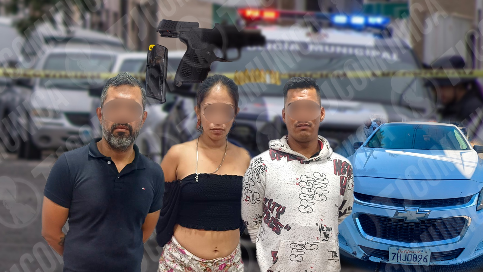 Las tres personas detenidas y trasladadas a la FGR, fueron identificadas como Mario Emerson “N”, Josué Rigoberto “N” y Cassandra “N”; los elementos también decomisaron un arm4 de fuego tipo pistol4 calibre .9mm con un cargador abastecido con 9 cartuchos, así como un vehículo Chevrolet Malibú color blanco.
