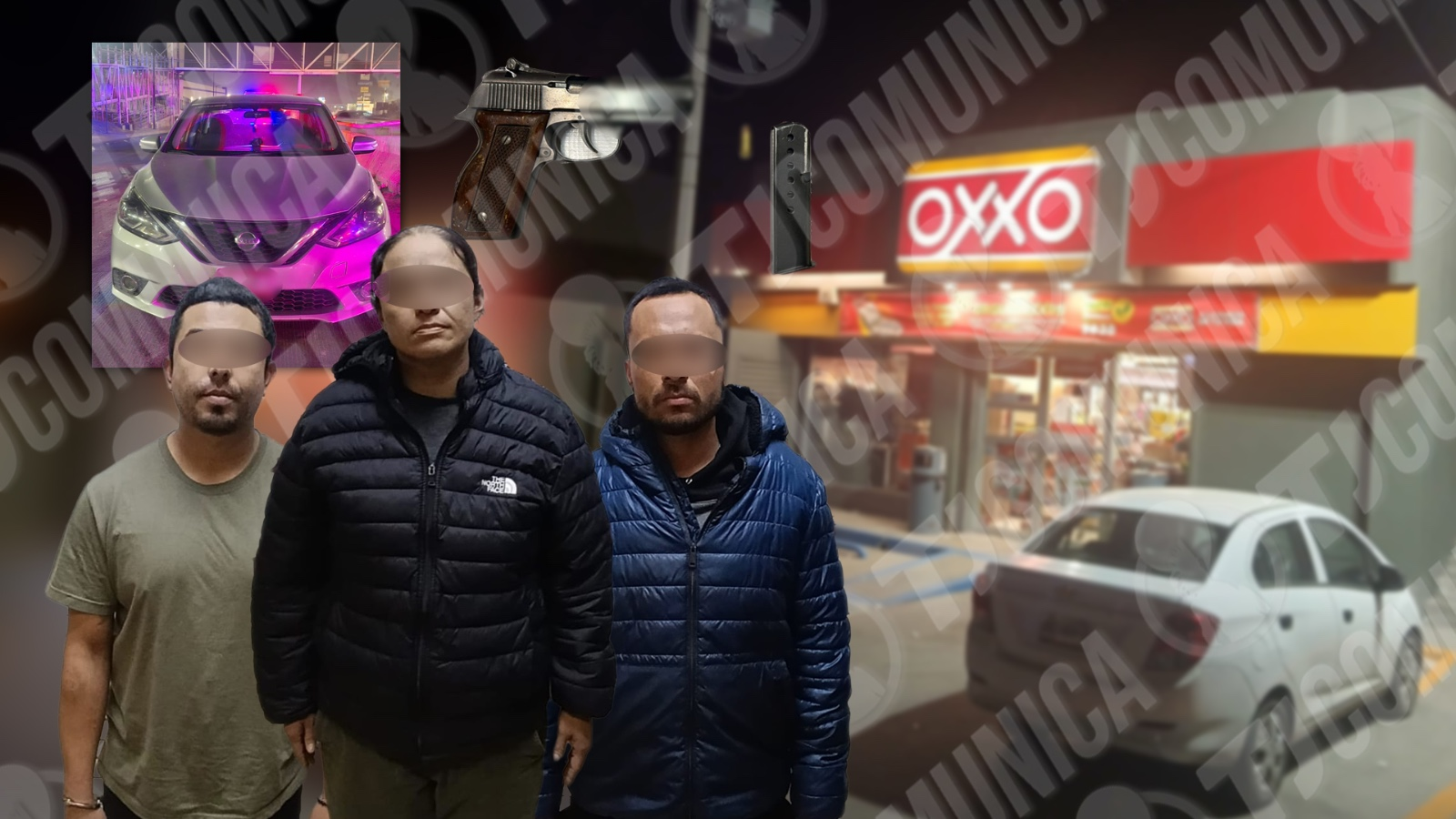 Tres personas, dos hombres y una mujer, fueron detenidas la noche del 19 de diciembre de 2026 por su presunta participación en un robo con violencia cometido en una tienda de conveniencia OXXO ubicada en la colonia El Florido, primera sección.