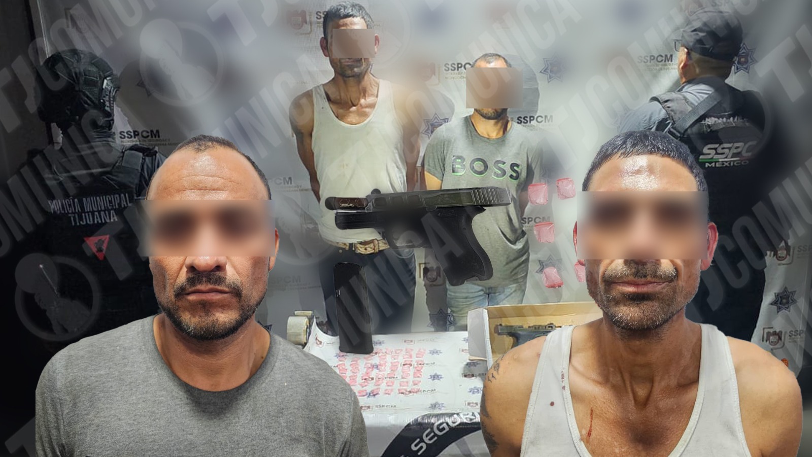 Dos hombres fueron detenidos la tarde del 27 de marzo por elementos de la Unidad Táctica Especial en la privada Camelio, en el fraccionamiento Urbiquinta del Cedro, en el distrito Santa Fe, por su presunta responsabilidad en los delitos de portación de arma de fuego, posesión de cartuchos y narcomenudeo.
