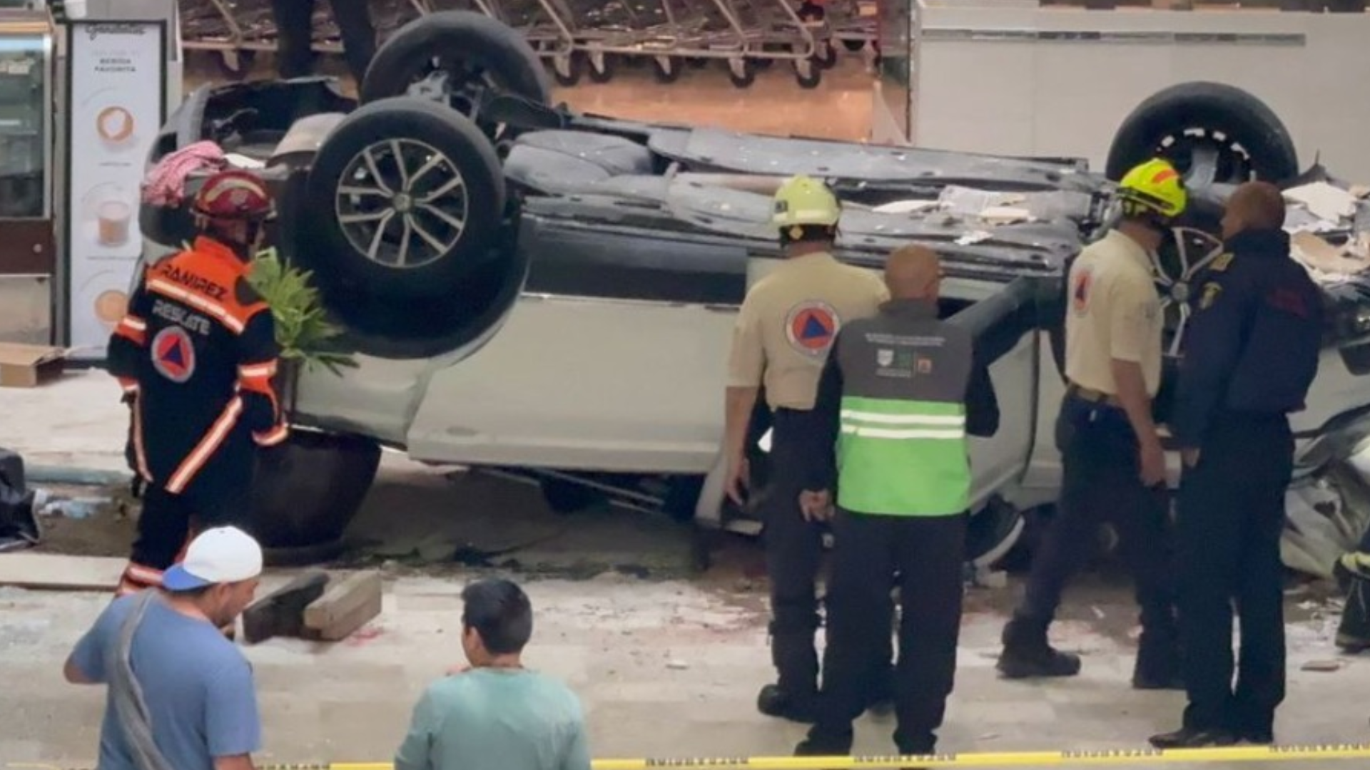 Vehículo cae desde el tercer piso de una plaza en Miguel Hidalgo.
