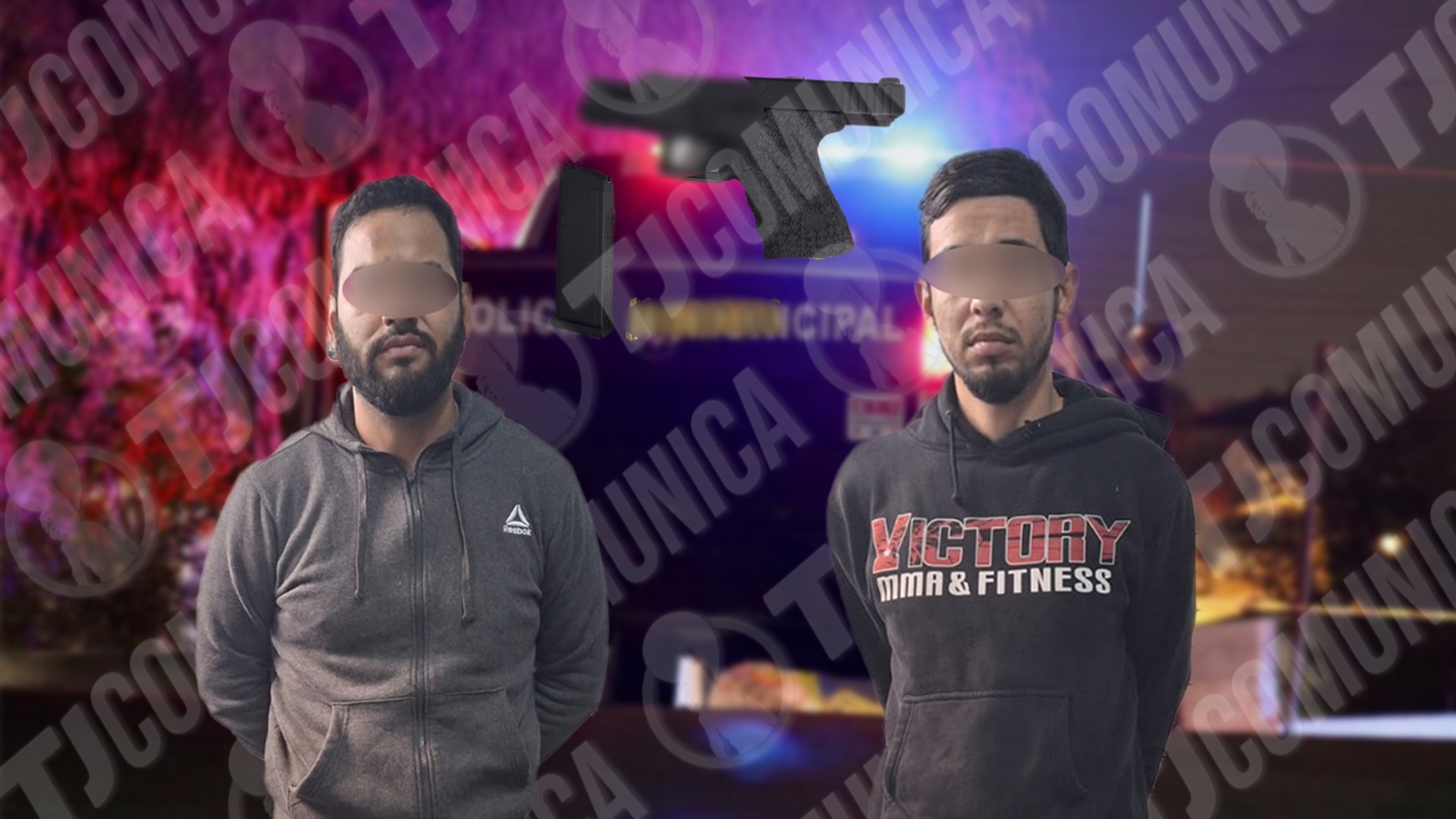 Elementos de la Policía Municipal de Tijuana detuvieron a Roberto “N”, de 31 años de edad y originario de Tijuana, y a Cuauhtémoc “N”, también de 31 años y originario de California, por portación de arma de fuego, en la calle Emilio Sola y Vista Hermosa, de la colonia Linda Vista.